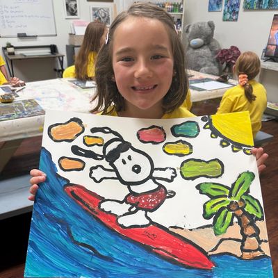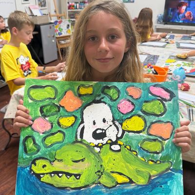 For fun loving kids to the more serious students of art. In this SNOOPY art camp students will be learning and creating projects centered around famous artist from the past and the present, like Tom Everhart, Charles Schulz, Romero Britto, Piet Mondrian’s, Kandinsky. We will talk briefly about the life of the artist, their work, and then students will create their own masterpiece inspired by the work of that artist. They will also learn cartooning styles such as anime, manga, squishmallows, Kawaii and many more fun techniques.
